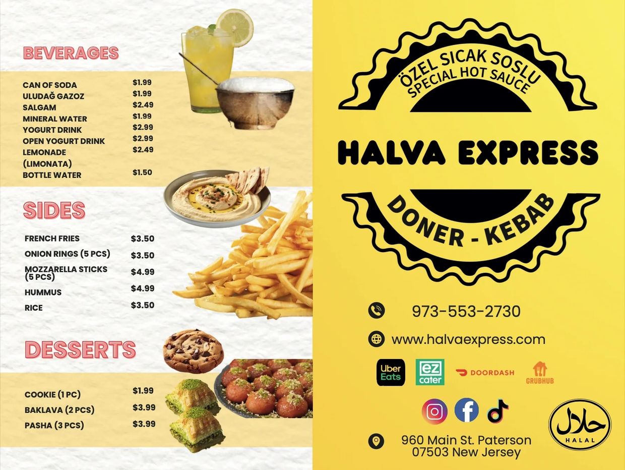 At Halva Express, we specialize in delicious fast casual dining that brings the flavors of the Mediterranean to your table. Our vibrant yellow and black branding reflects the energy and excitement of our mouthwatering menu, featuring halal chicken and beef gyros.